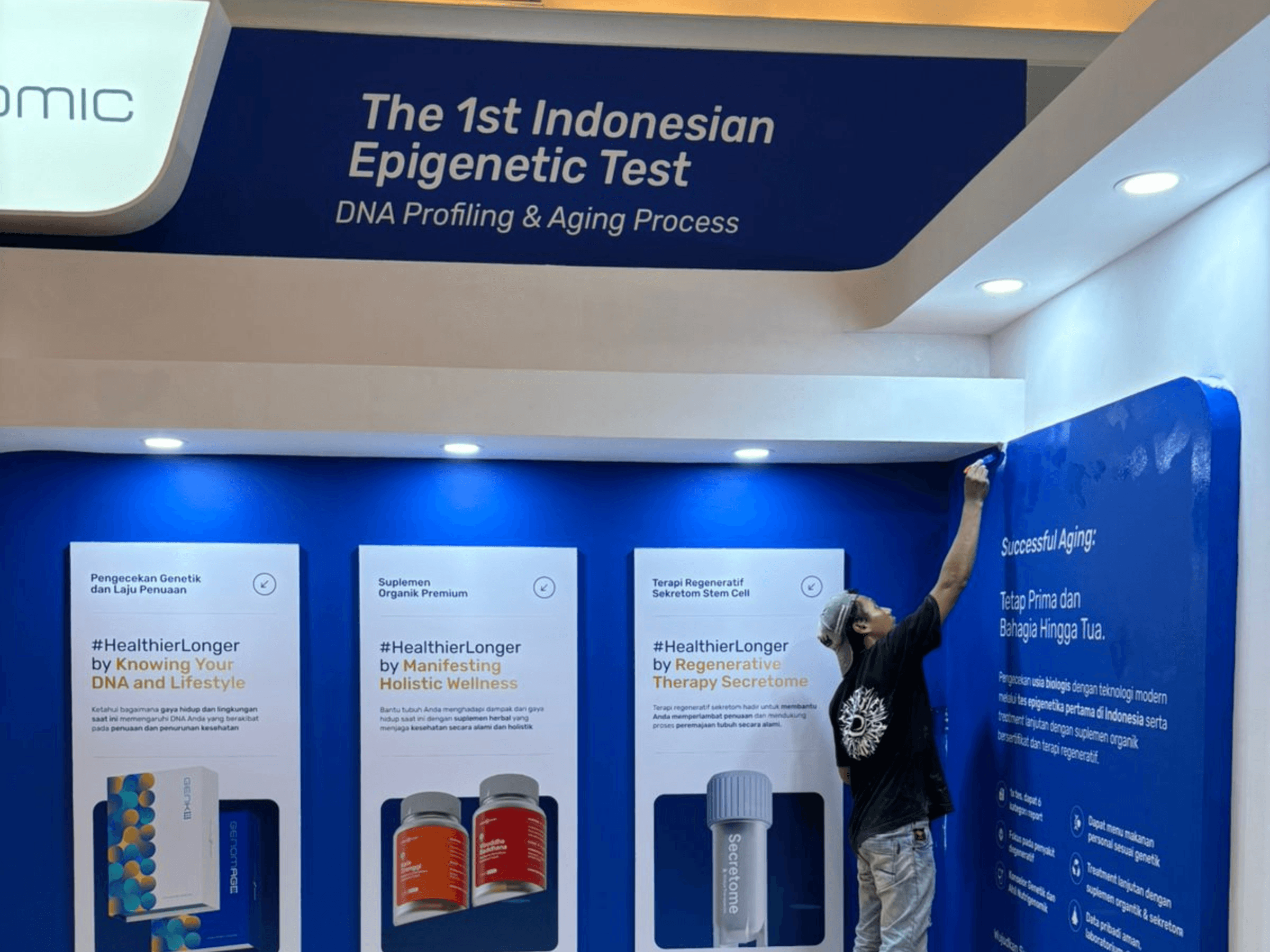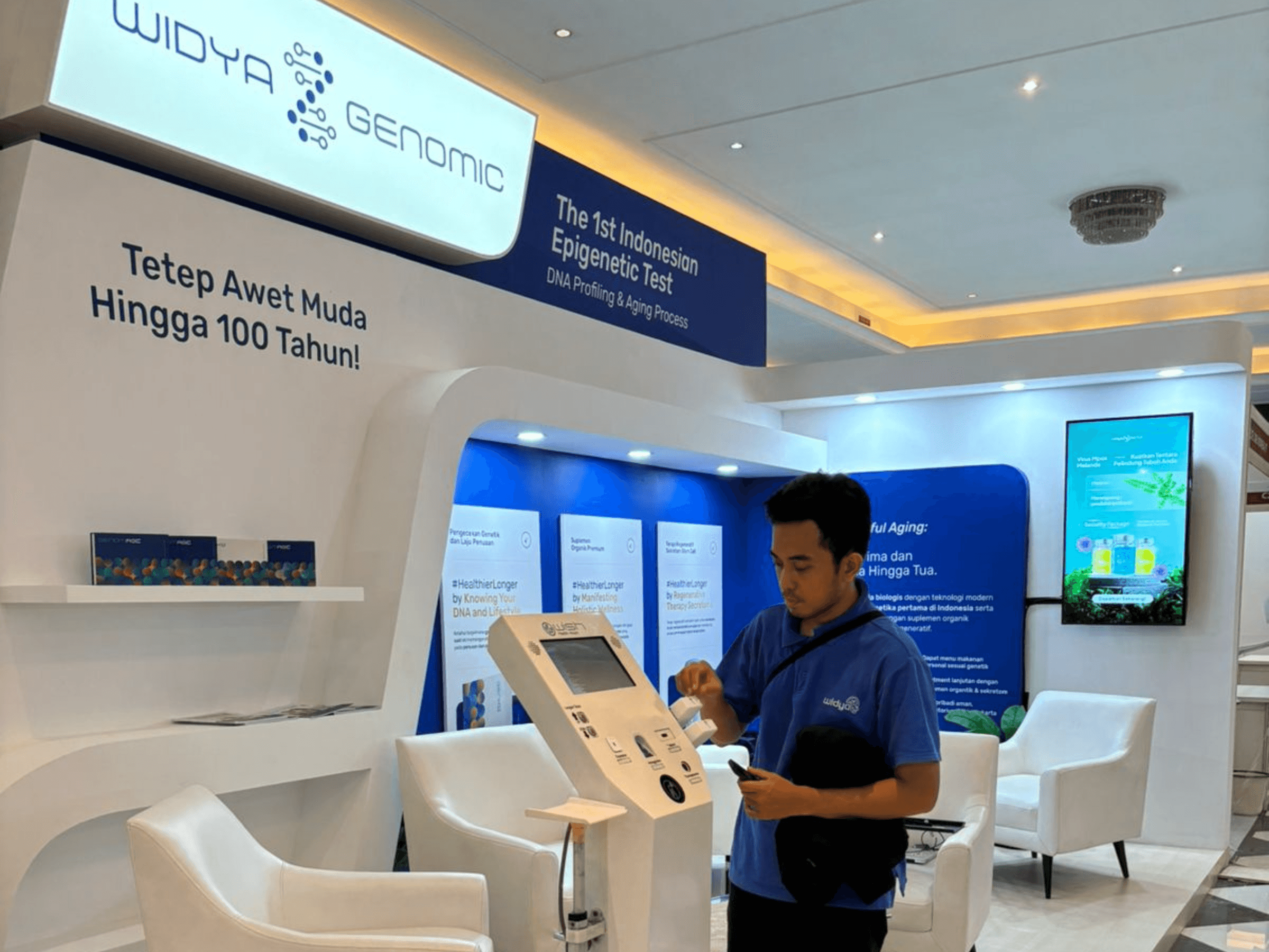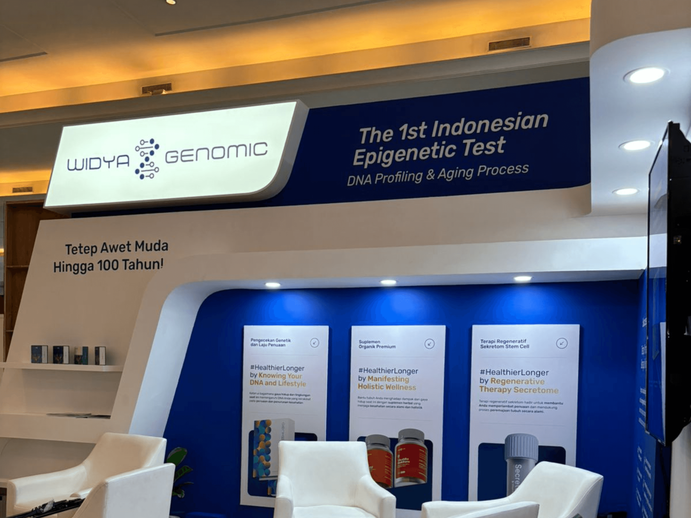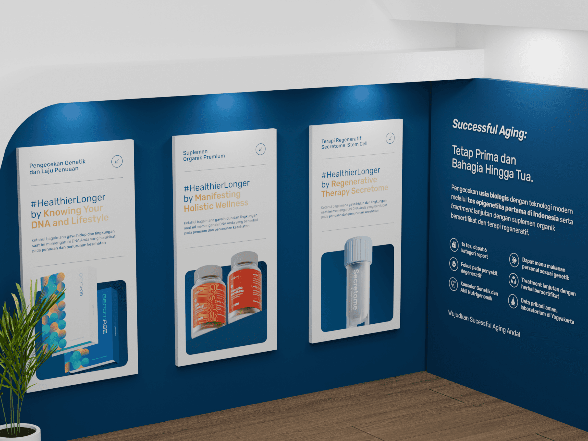 To design a targeted, cost-efficient booth that maximized brand visibility, educated visitors on the benefits of genetic testing, and ultimately drove qualified conversions. Every element—from spatial layout to visual storytelling—was crafted to position Widya Genomic as an innovative yet accessible solution for aging individuals seeking proactive health care.