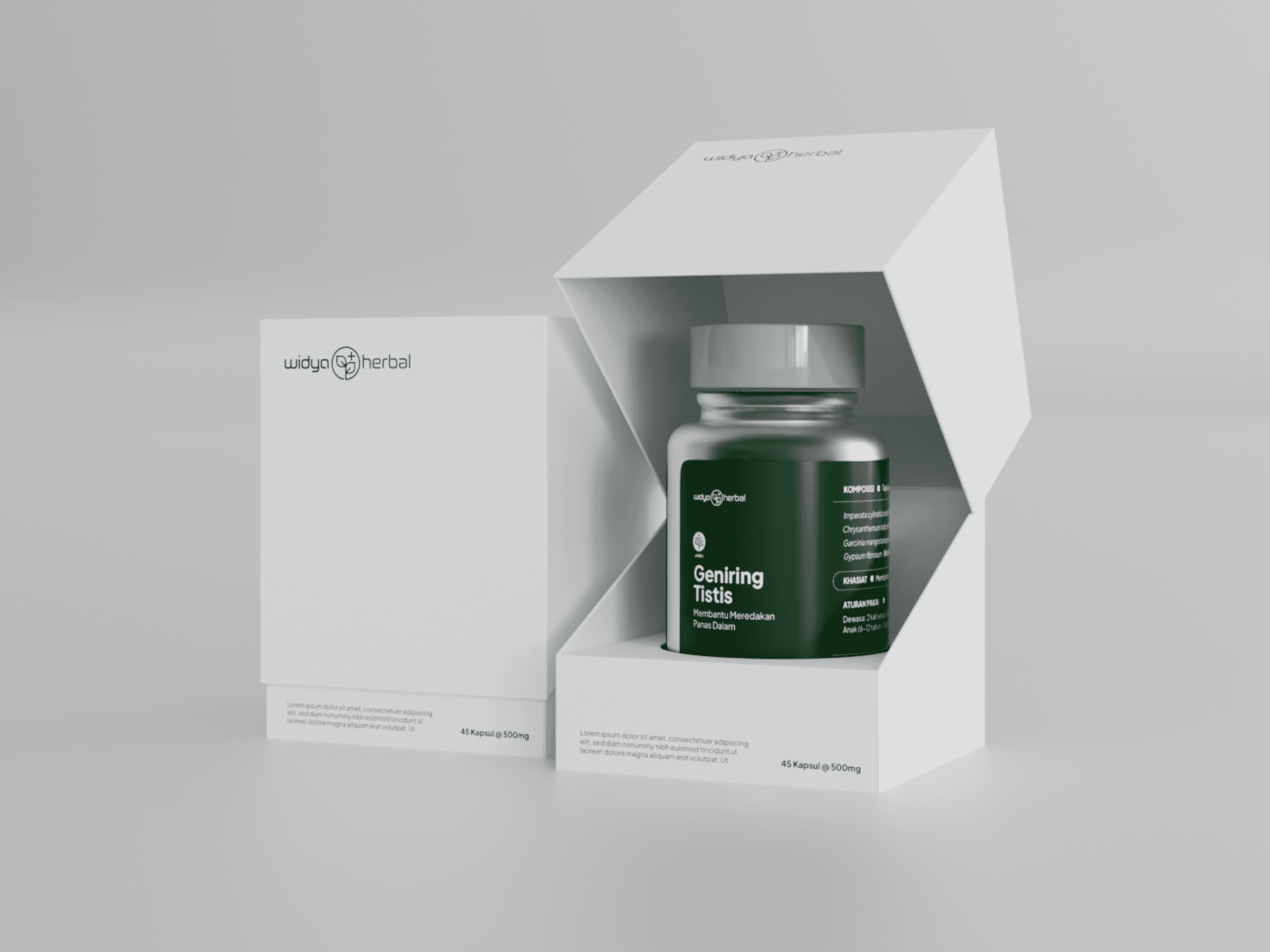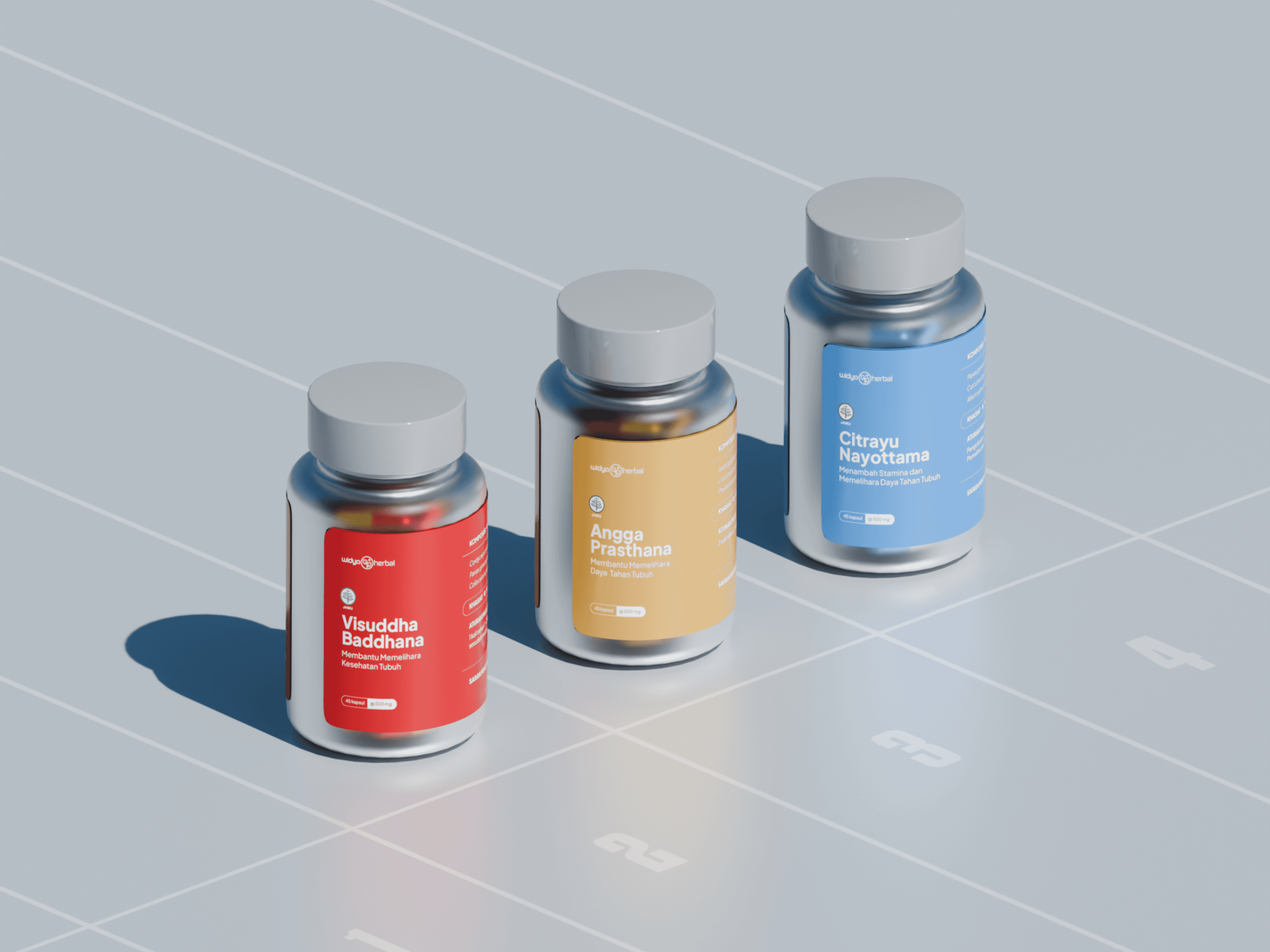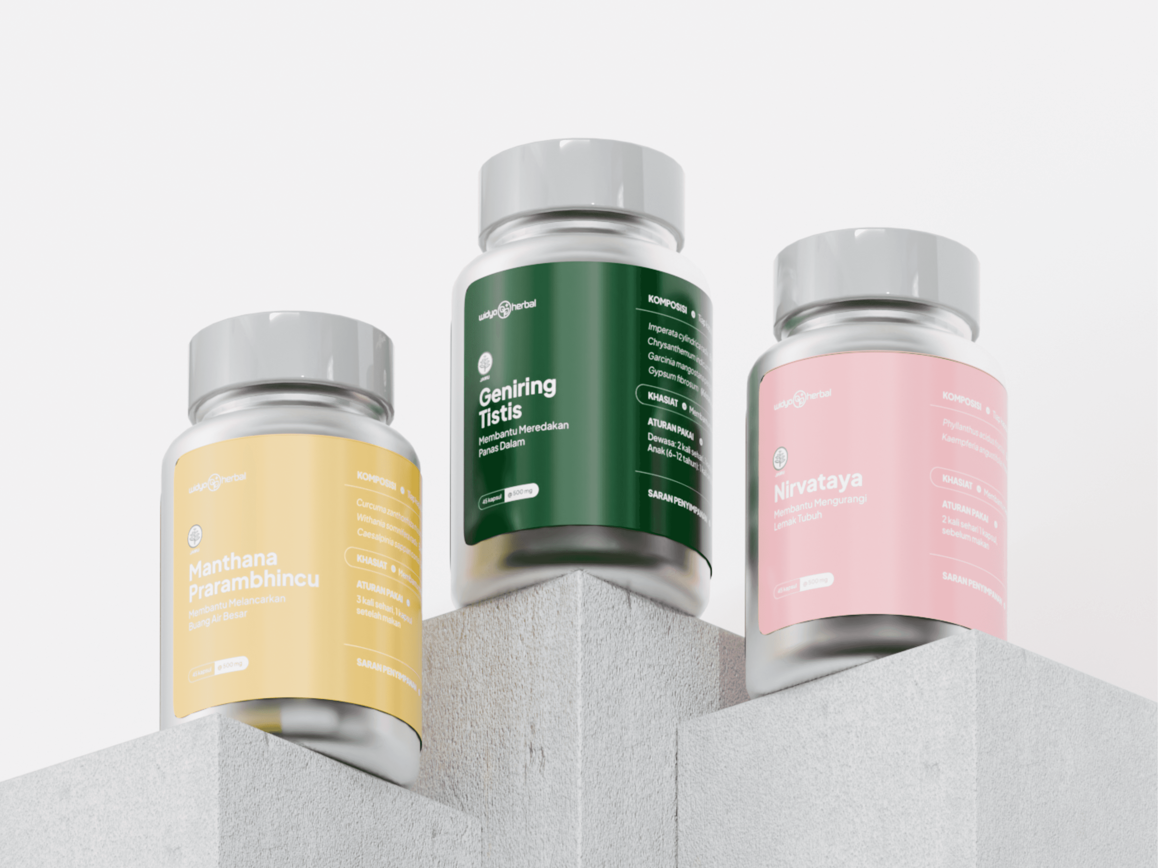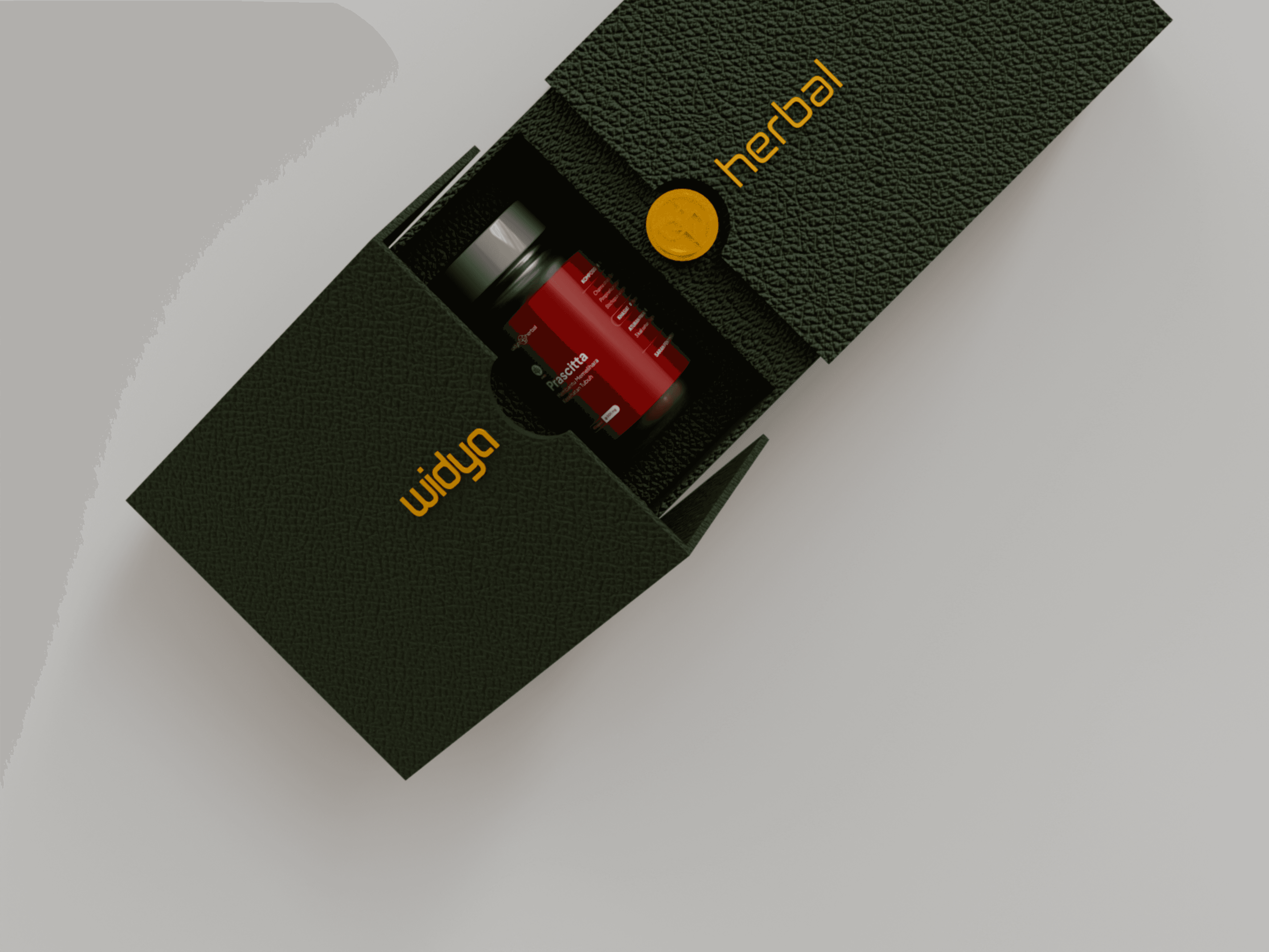 Widya Herbal Indonesia, known for its premium herbal supplements, needed packaging that could reflect the quality of its products. The previous design used standard printed stickers on frosted glass, which not only lacked aesthetic appeal but also performed poorly in product photography and digital marketing.